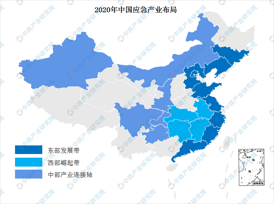 我国安全和应急产业已经初步呈现出集群化分布特征,形成“两带一轴”(东部发展带、西部崛起带、中部产业连接轴)的两业融合总体空间格局。