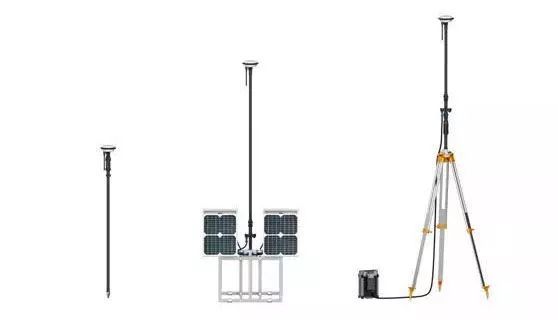 一套RTK设备除了飞机上的定位模块,还包括GNSS RTK手持测绘器、GNSS RTK移动基站和GNSS RTK固定基站。如下图: